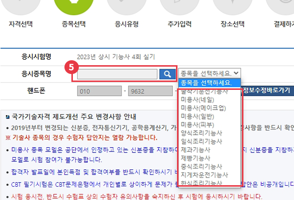 응시할 종목 입력 후 ‘종목검색’ 클릭